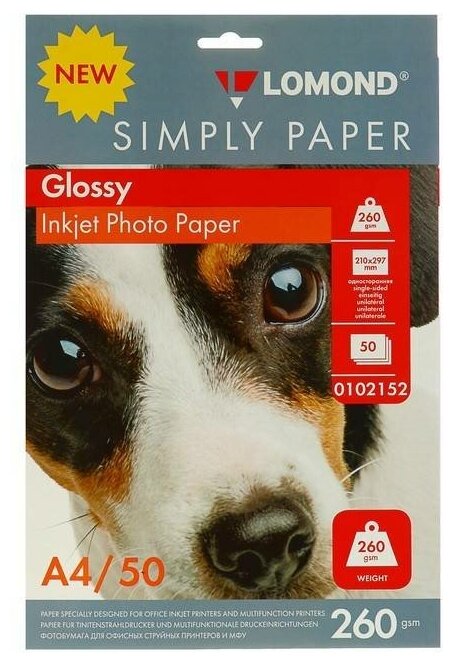 Фотобумага Lomond Simply A4, 260 г/м2 (50 листов) экономичная глянцевая односторонняя (0102152)
