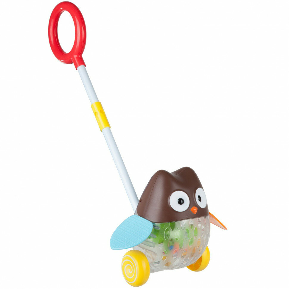 Игрушка пластмассовая каталка с ручкой сова, (светится) Bondibon (ВВ2381)