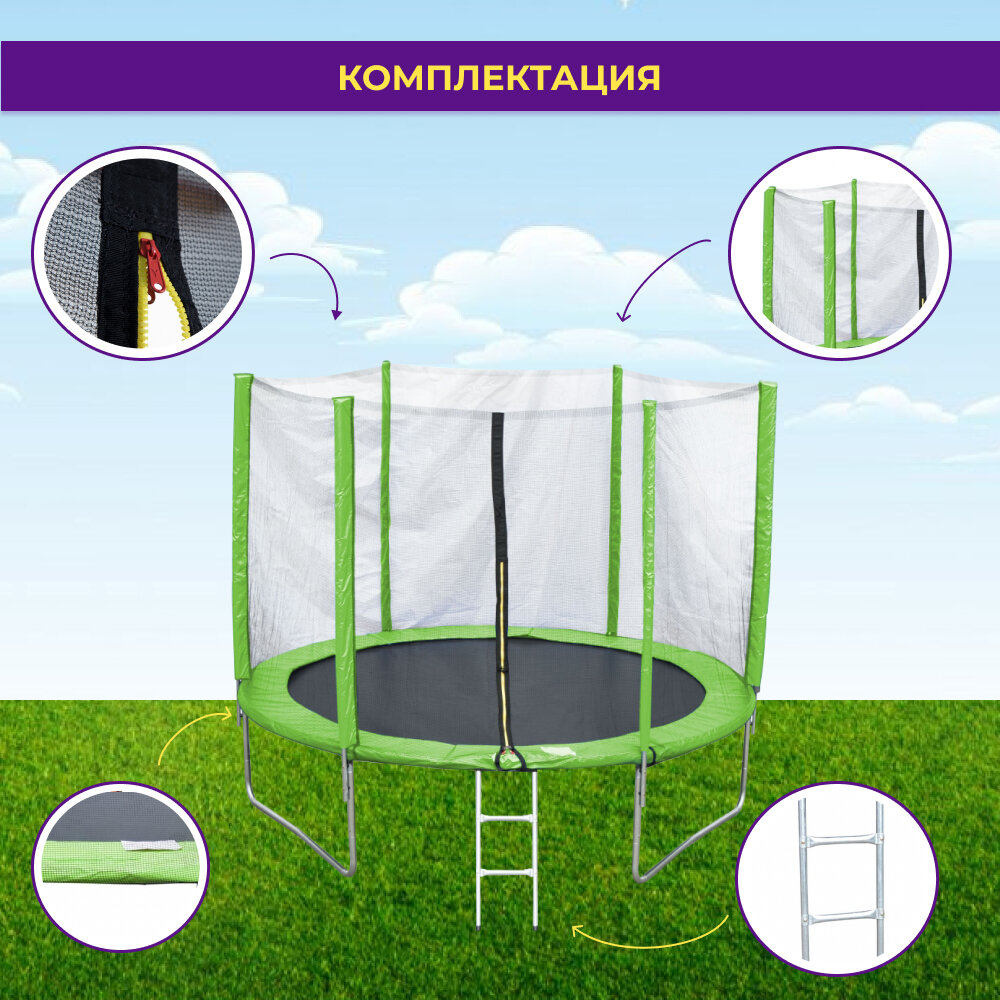 Купить Батут с лестницей и внешней сеткой 306 см зеленый