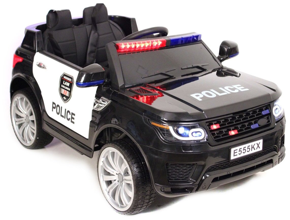 Электромобиль RiverToys E555KX с дистанционным управлением - черный полиция