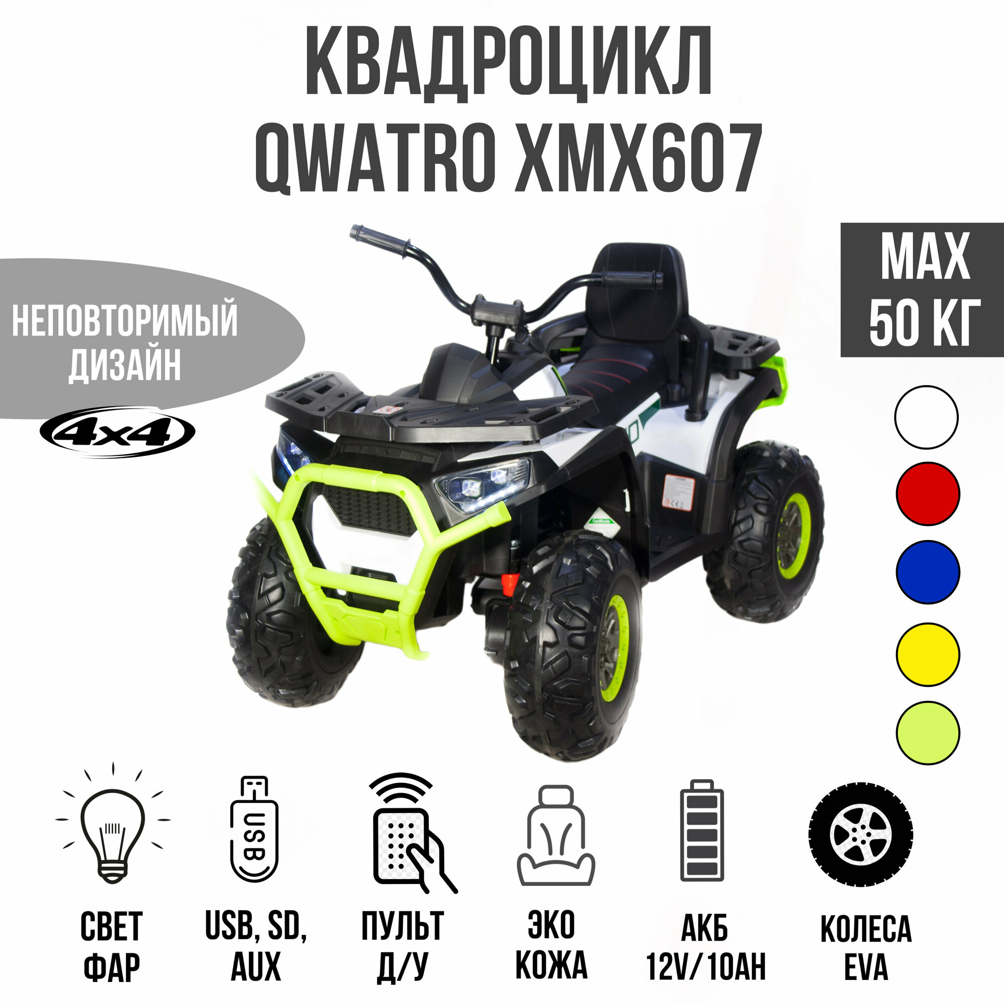Квадроцикл Qwatro 4х4 ХМХ607 Белый