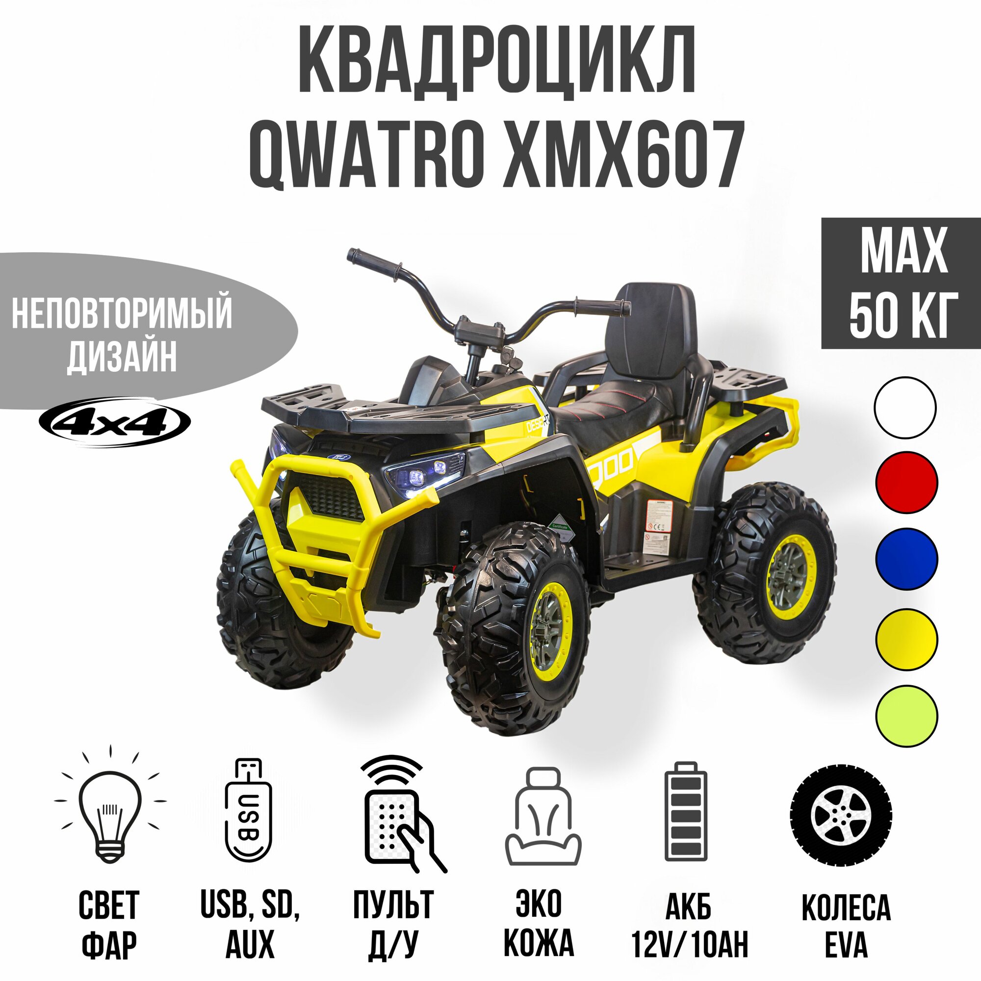 Квадроцикл Qwatro 4х4 ХМХ607 Желтый