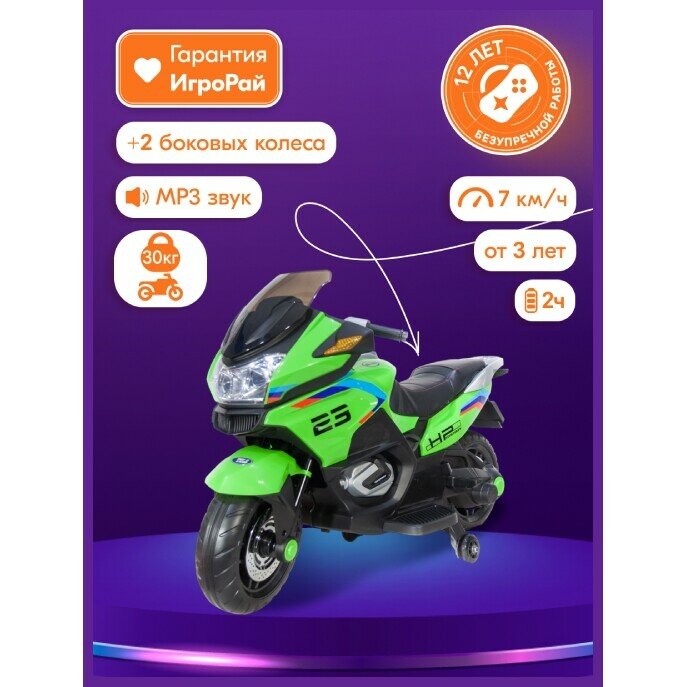 Электромотоцикл Toyland Moto 12V/7Ah зелёный ХМХ 609 З ХМХ609З