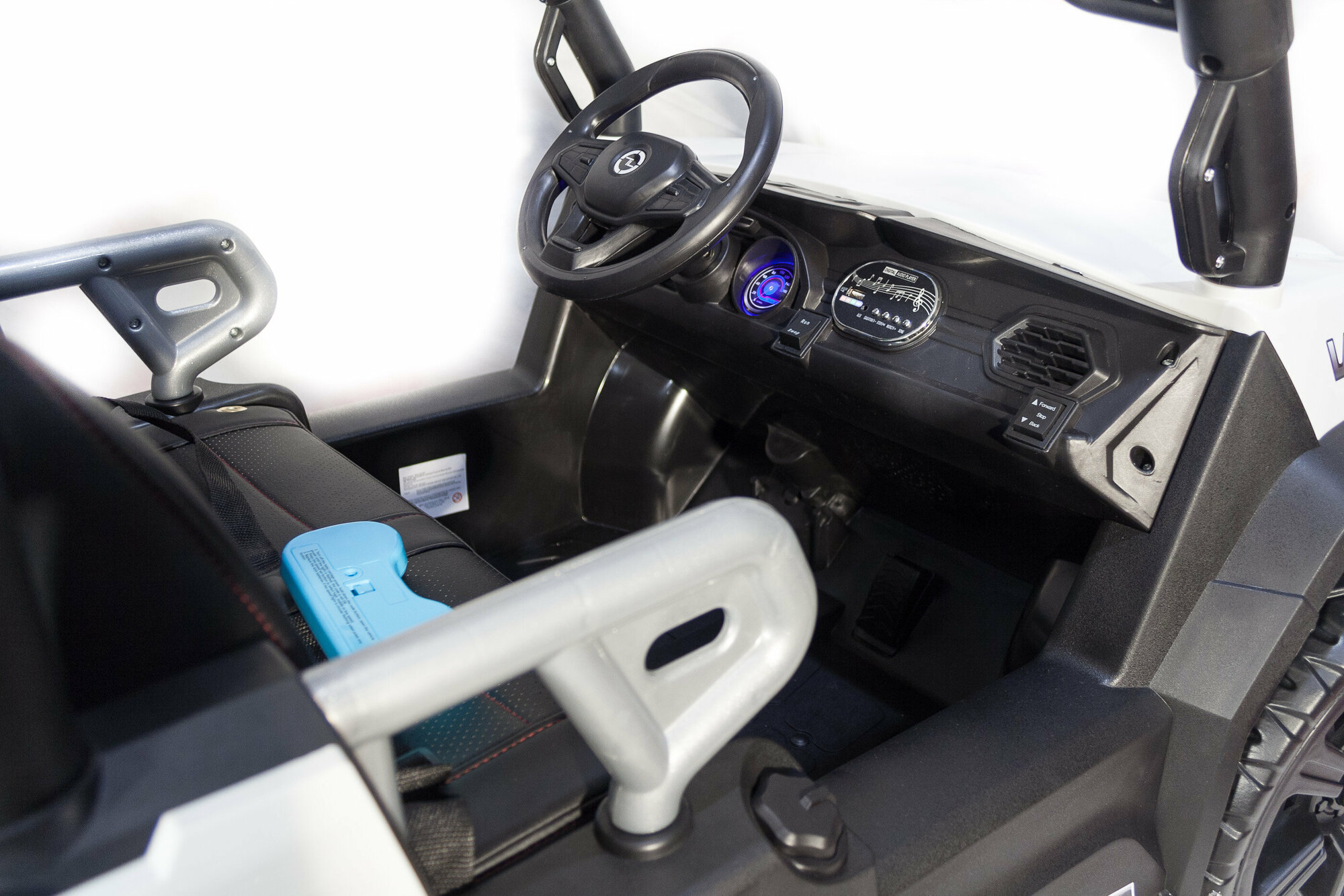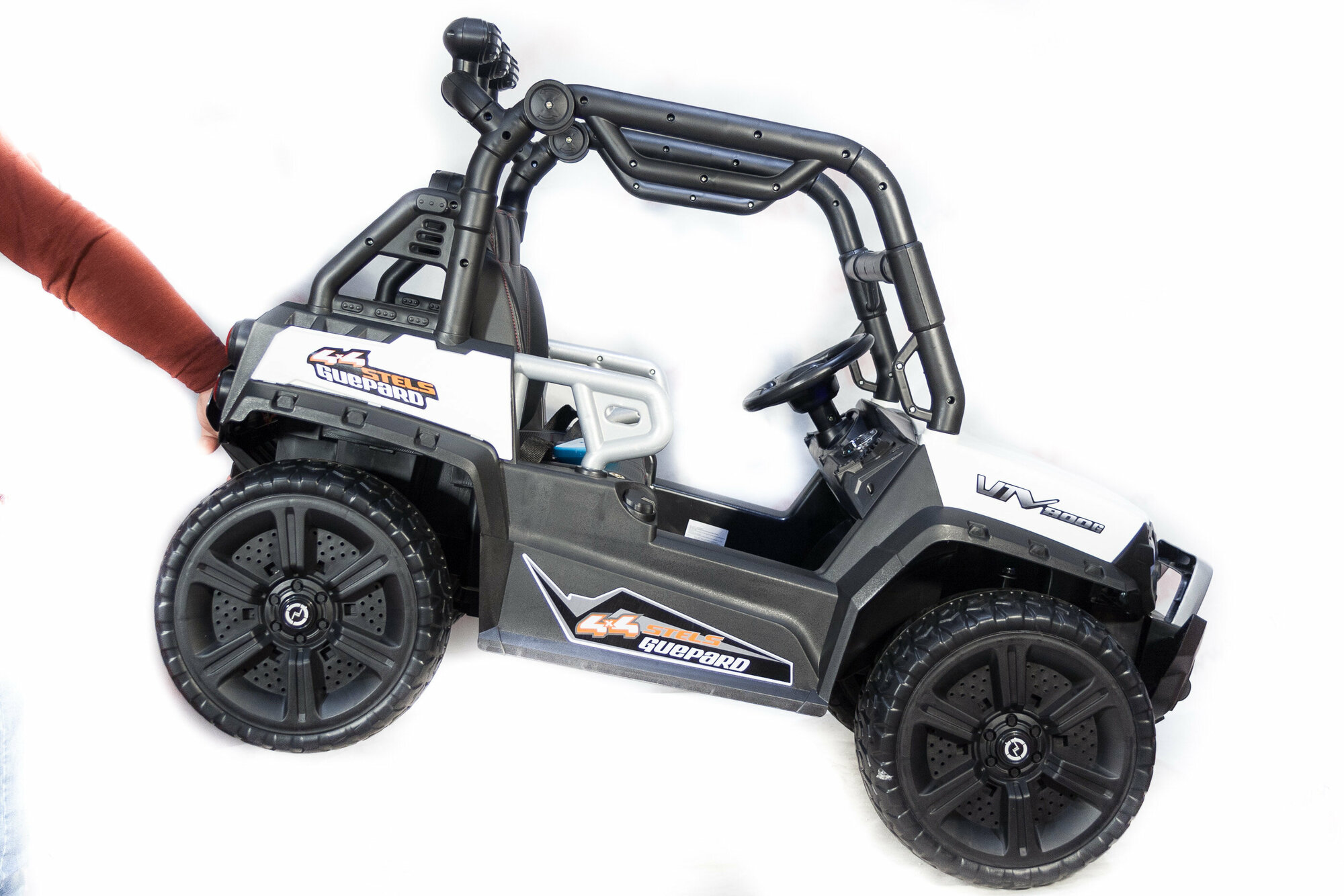 | Минусы: | В квартире держать ее не совсем удобно, ширина проемов дверей немного меньше, чем ширина багги, прям впритык в лифт заехали. Верхние фонари плохо работают, потому отсек для батареек немного кривой и чуть больше чем батарейки. Нет мигающих фонарей, громкость музыки при включении громкая, приходится всегда убавлять. Радиус поворота огромный, Дуги : нет инструкции как их снять (иногда надо перевести допустим с дачи домой). Один ребенок смотрит только на перекладину в спереди, другой выше.Непонятно когда зарядился аккумулятор, всегда красный огонек. Стартует резко, даже на первой скорости. |