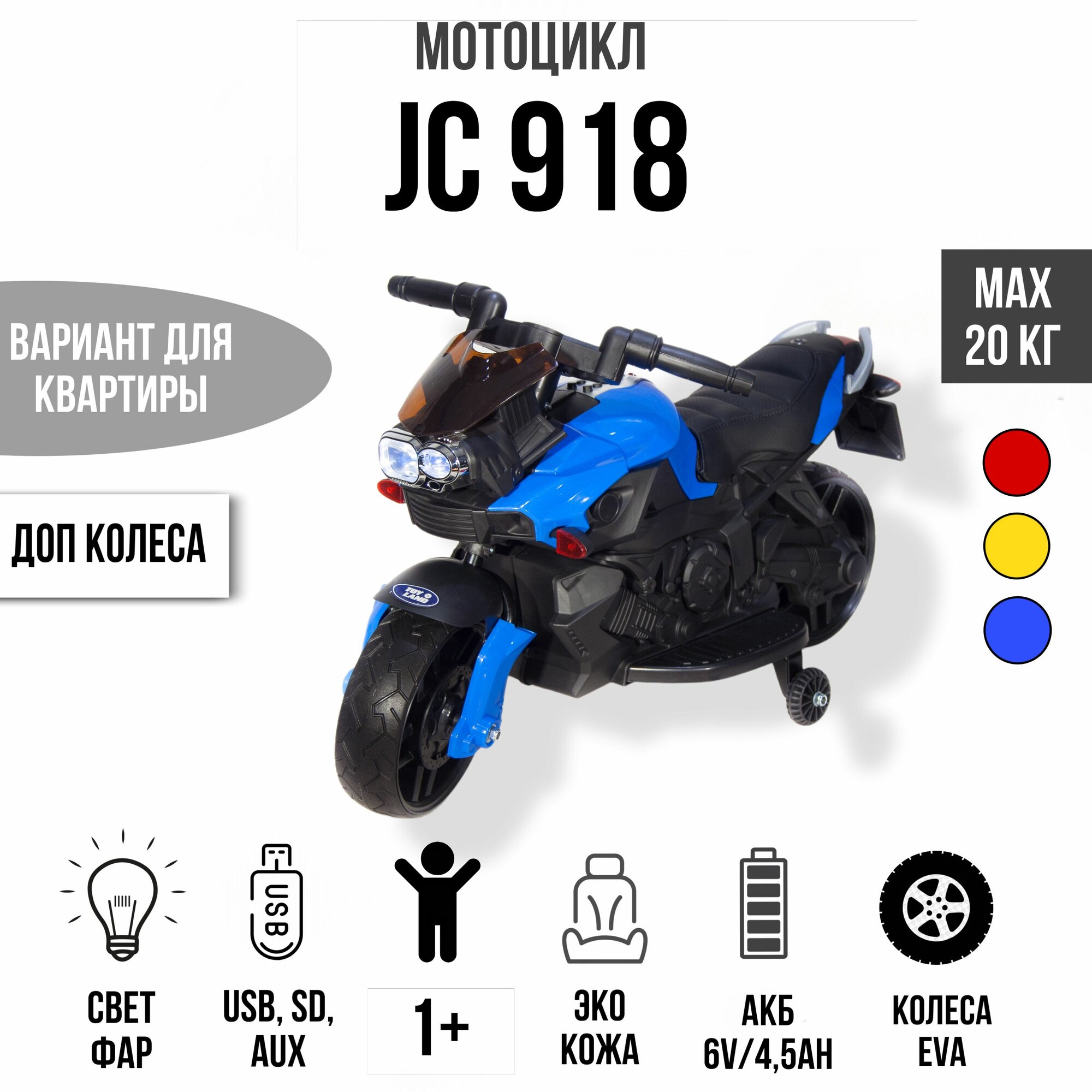 TOYLAND Электромобиль Moto JC 918 (синий)