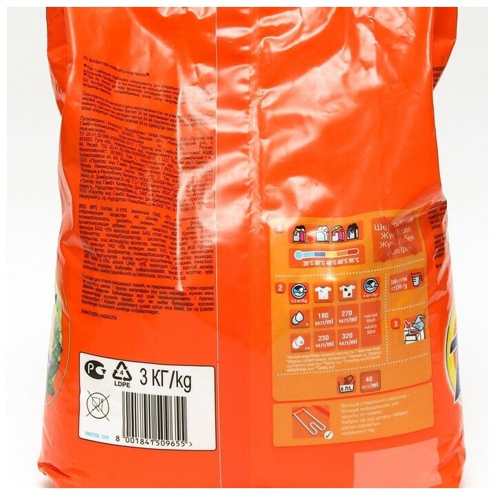 | Отзыв: | Отличный бюджетный порошок который за свою цену совершает чудо, отстирывает не только легкие загрязнения, но и на специальных режимах способен отстирать въевшуюся грязь. Порошок отлично пахнет и не вызывает аллергии у моих домочадцев. Упаковку можно подобрать исходя из своих потребностей практически любого веса |