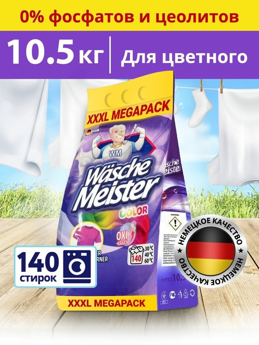 Wasche Meister Waschpulver Color Стиральный порошок для цветных тканей 10,5 кг на 140 стирок в мягкой упаковке