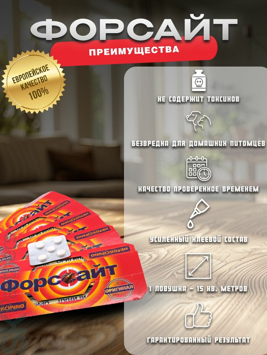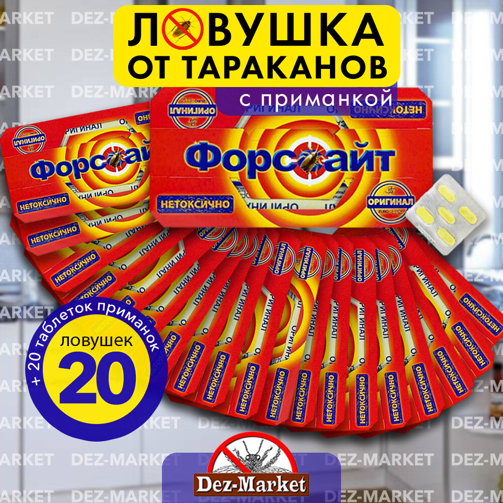 Форсайт (Форссайт) клеевые ловушки от тараканов с феромоновой таблеткой, средство от тараканов набор 5 шт