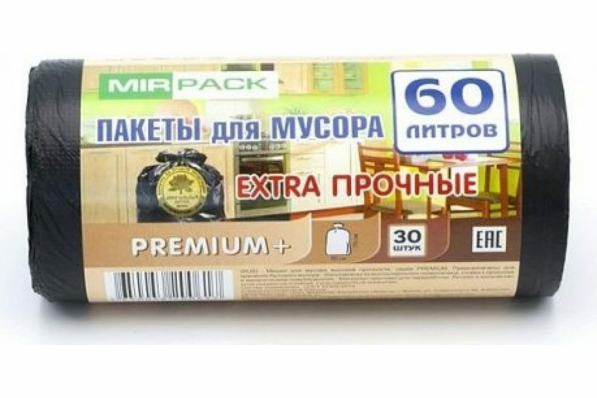 Мешки для мусора MIRPACK PREMIUM+ Extra прочные 60 л, 30 шт., черный