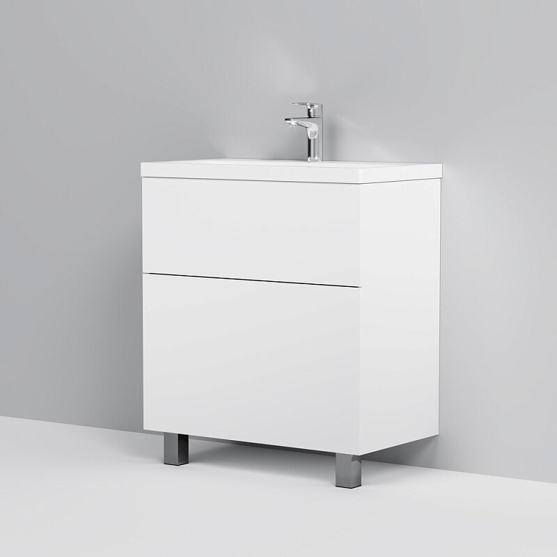 Тумба с раковиной Am.Pm Gem 75 белый глянец, напольная, с 2 ящиками