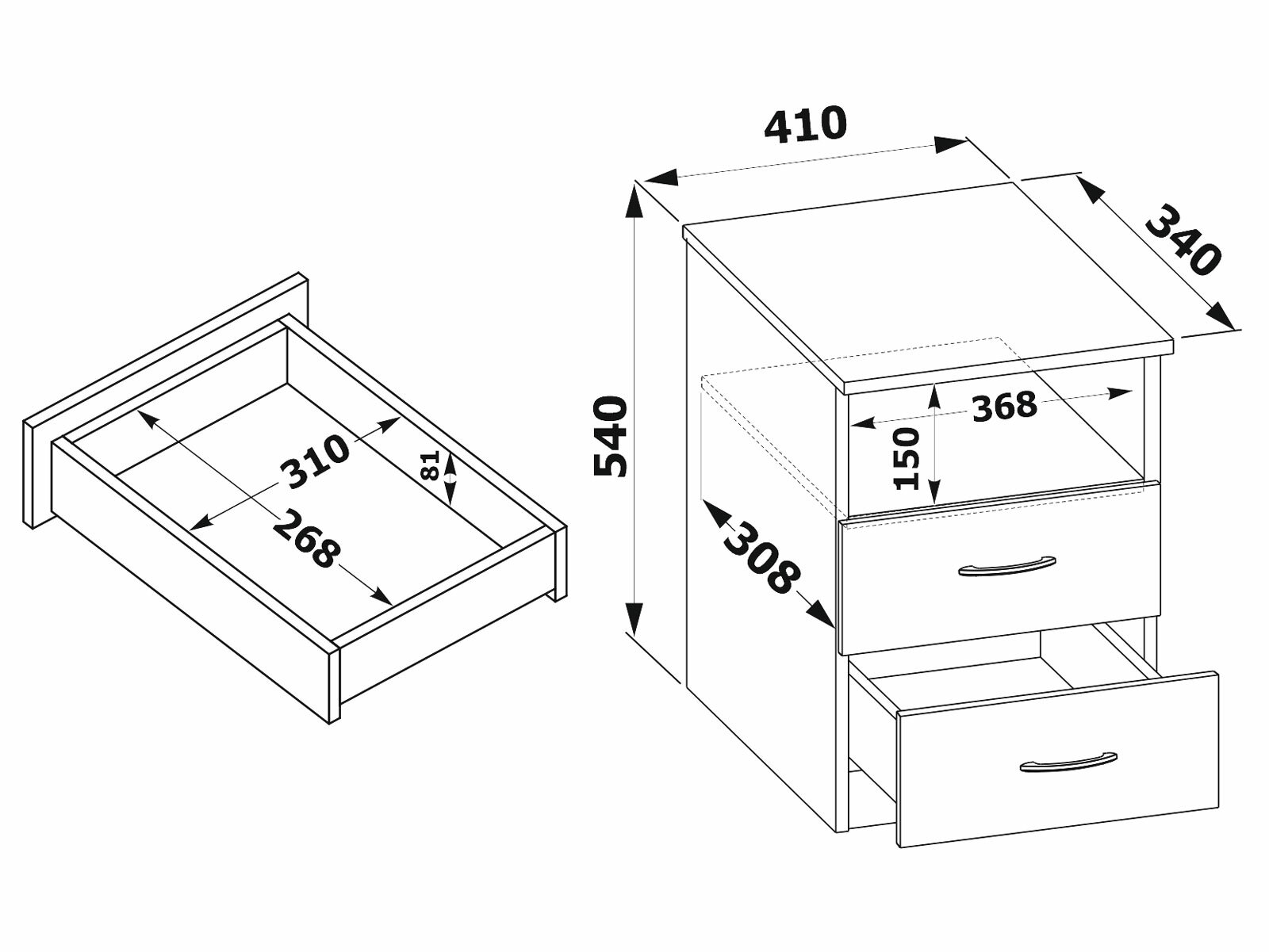 Тумба с двумя ящиками и верхним отделением КТ-09.1, цвет венге/беленый дуб, ШхГхВ 41х34х55 см.