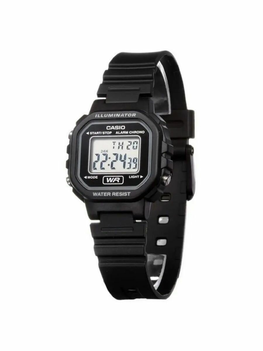 Наручные часы CASIO LA-20WH-1A кварцевые, будильник, секундомер, водонепроницаемые, подсветка дисплея, бесшумный механизм, черный
