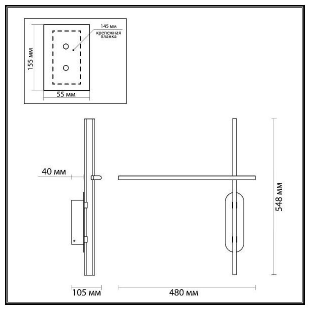 3890/20WL L-VISION ODL20 105 черный/металл Настенный светильник LED 3000K 20W 220V RUDY