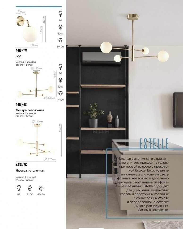 4418/6C Потолочная люстра на штанге Lumion Estelle