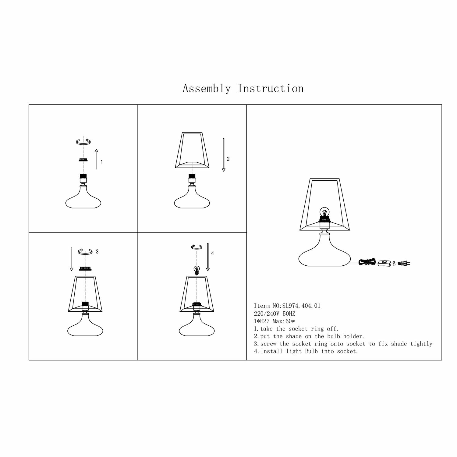 | Диаметр плафона/абажура | 24 см |