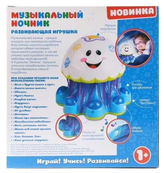 Умка "Умка" Музыкальный ночник "Медуза" (15 колыбельных и песен, звуки океана) 1707B383-R интересное: