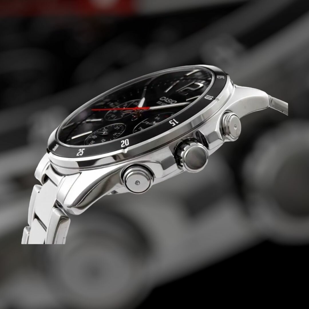 EFR-571MDC-1A Casio наручные часы кварцевые WR100 (10 атм) мужские черный отображение числа подсветка стрелок минеральное стекло