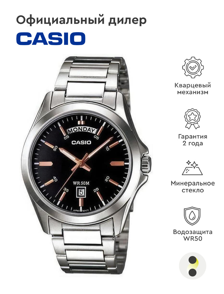 Наручные часы CASIO Collection MTP-1370D-1A2, серебряный, черный