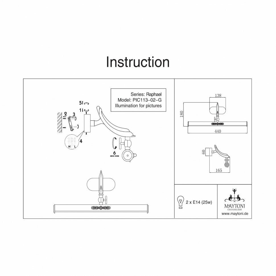 Подсветка для картин Maytoni Raphael PIC113-02-G, Золото, E14 50