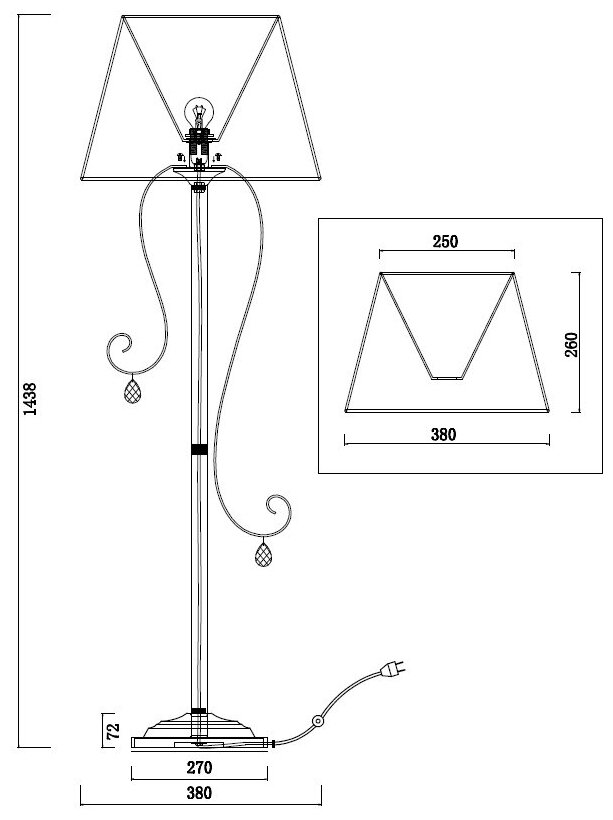 | Диаметр плафона/абажура | 38 см |