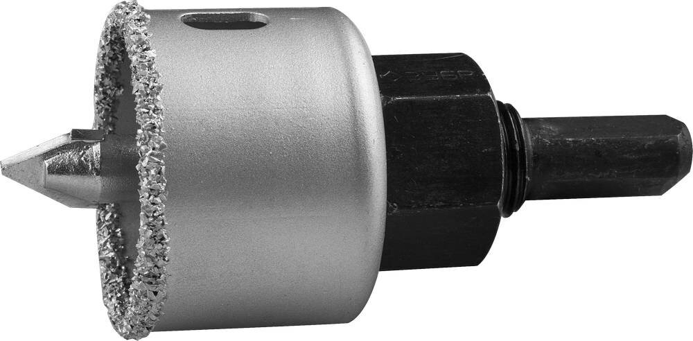 ЗУБР D 38 мм, L - 25 мм, карбид-вольфрамовая крошка, в сборе с державкой и сверлом, коронка-чашка ( 33360-038_z01 )
