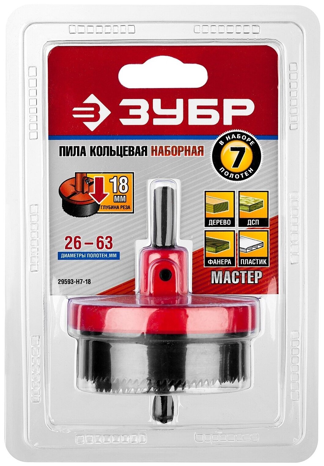 ЗУБР 7шт(26-63/18мм), пила сегментная наборная по дереву, 26-32-38-45-50-56-63х18 мм, ( 29593-H7-18 )