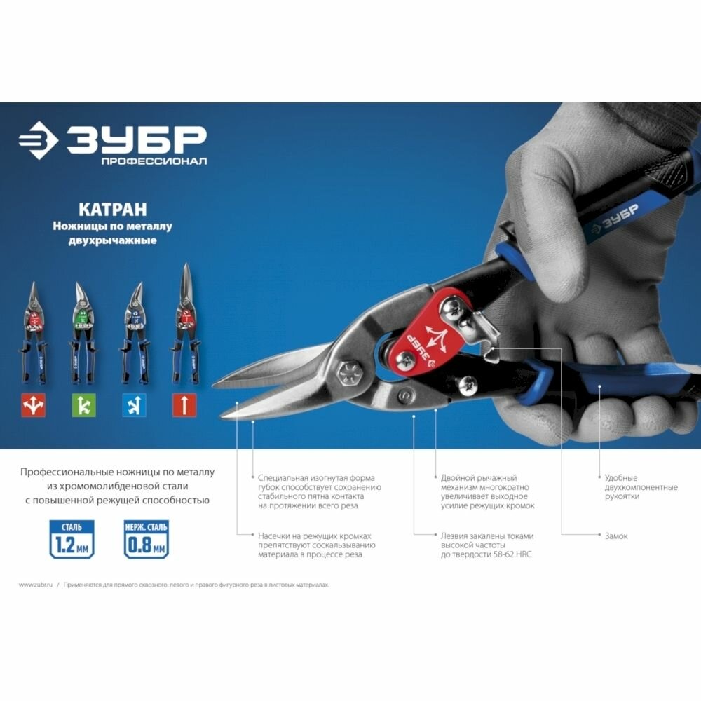 Зубр Профессионал Левые ножницы по металлу, 250 мм .
