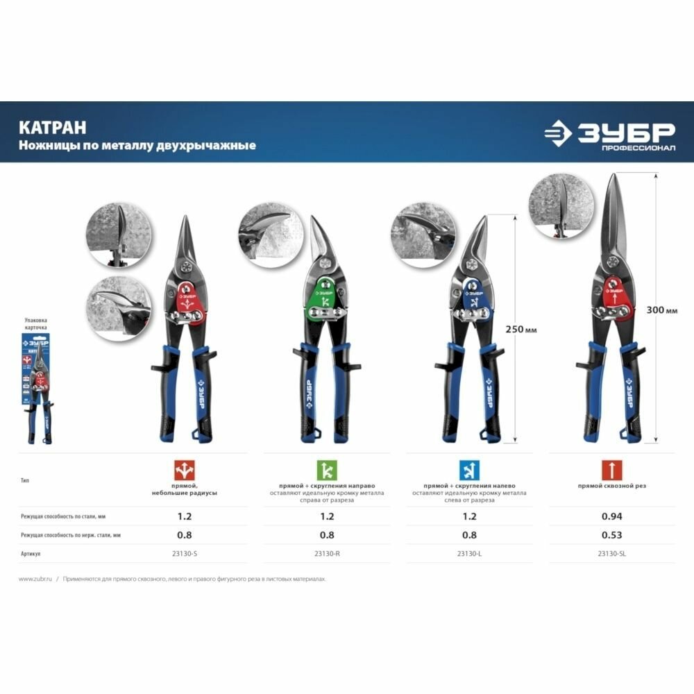 Ножницы по металлу Зубр Катран 23130-L, 250 мм, левые, Cr-Mo 23130-L .
