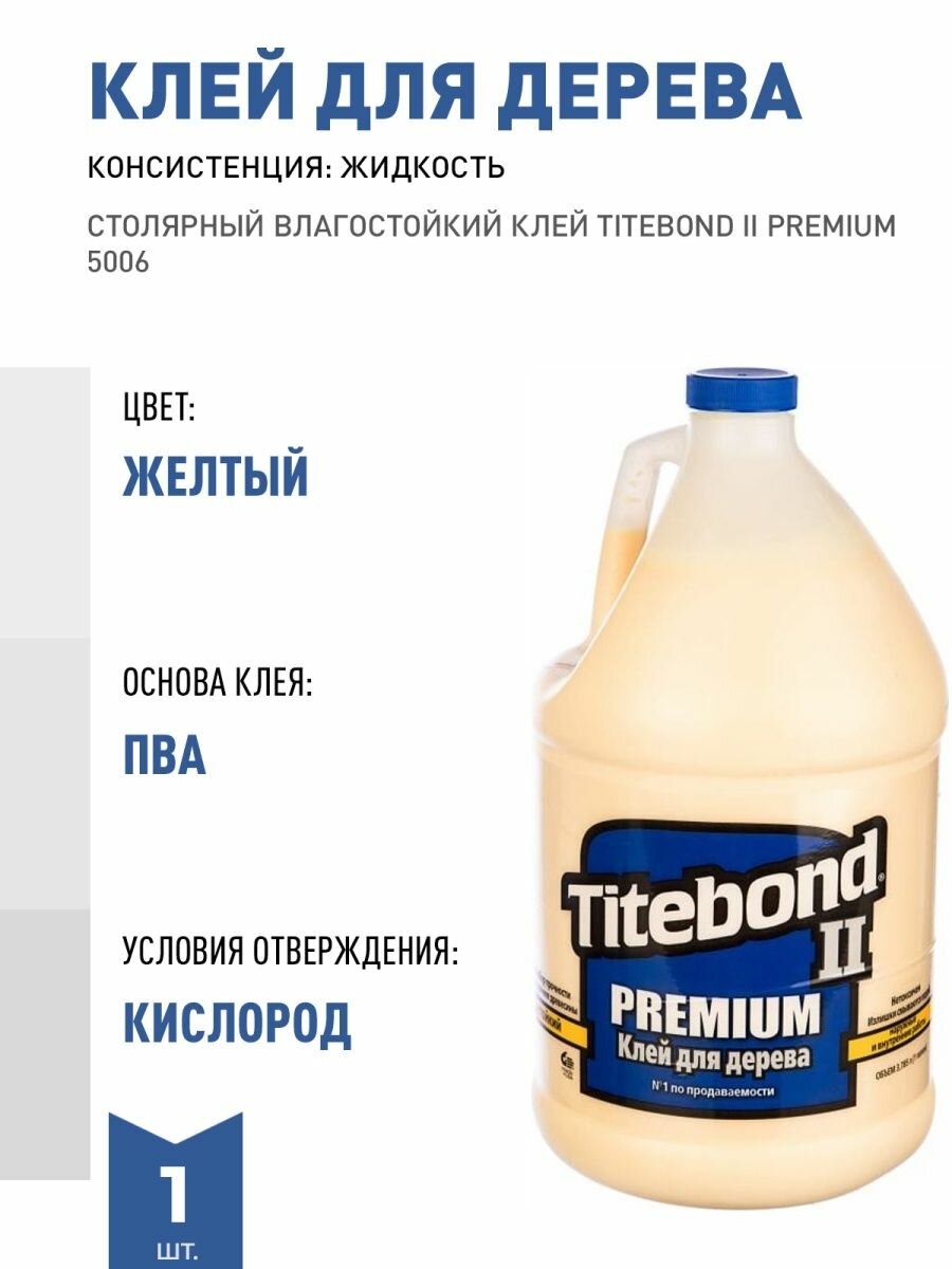 Клей для дерева TITEBOND II PREMIUM WOOD GLUE, клей ПВА влагостойкий, 3.78 л, 1 шт.
