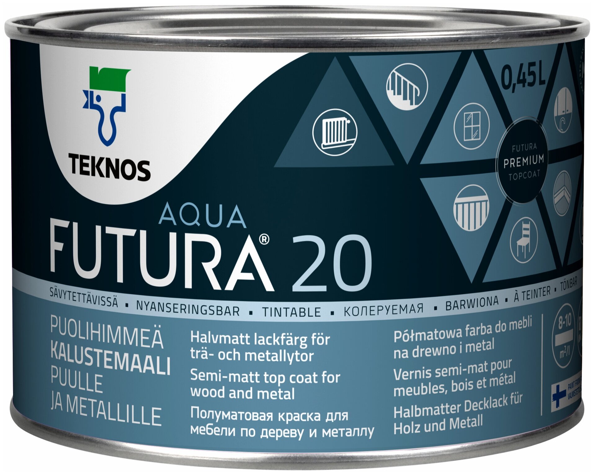 Краска алкидная TEKNOS Futura Aqua 20 полуматовая бесцветный 0.45 л