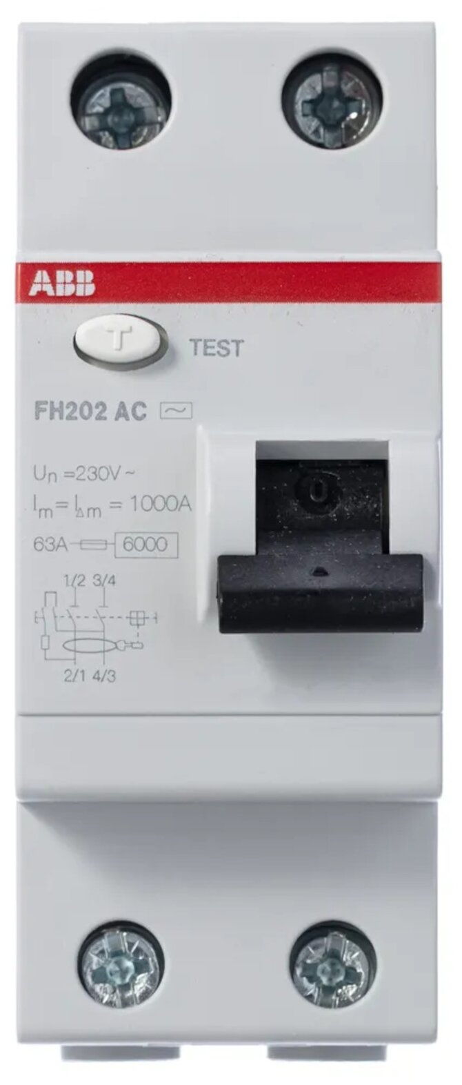 Устройство защитного отключения (УЗО) ABB FH202 2P 63А тип AC 30мА 6кА