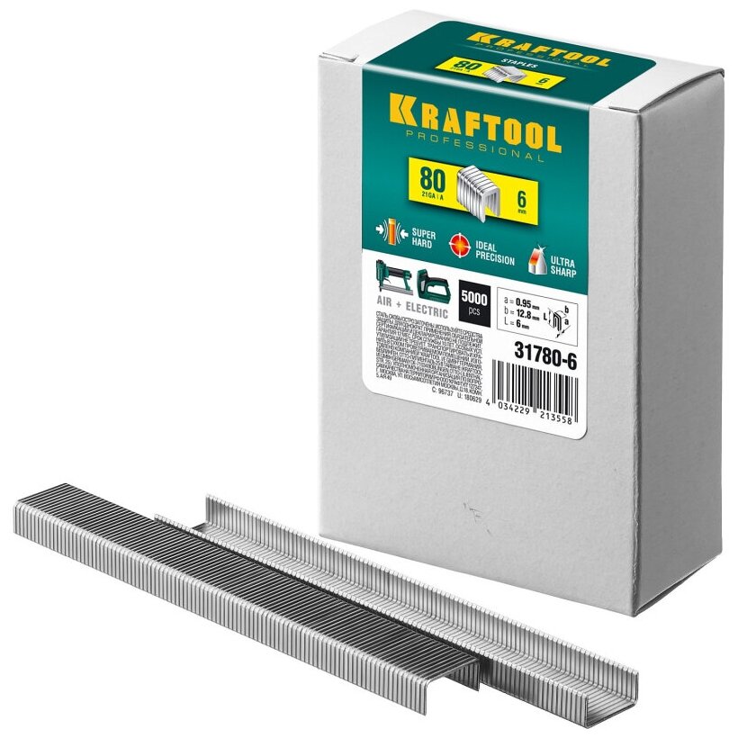 KRAFTOOL 6 мм скобы для степлера тонкие широкие тип 80, 5000 шт 31780-6