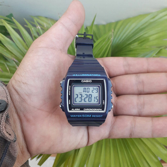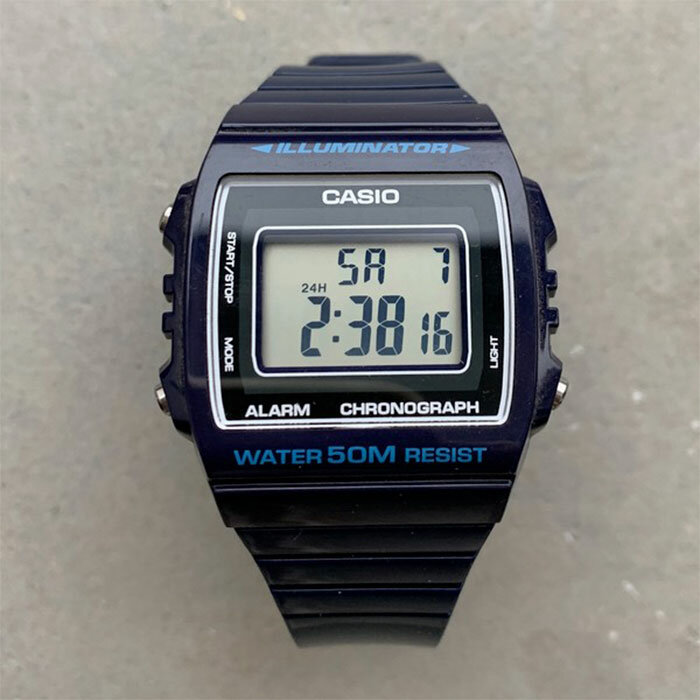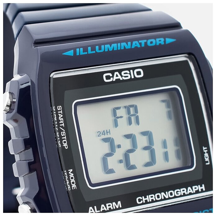 W-215H-2A Casio наручные часы кварцевые WR50 (5 атм) мужские, женские синий секундомер будильник отображение числа, отображение дня недели подсветка дисплея акриловое стекло