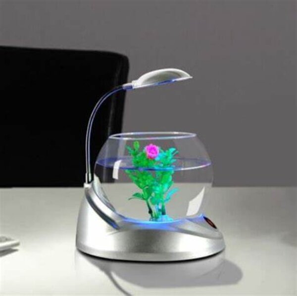 Круглый аквариум для рыбок с LED-подсветкой и грунтом, 2,5 л серебро