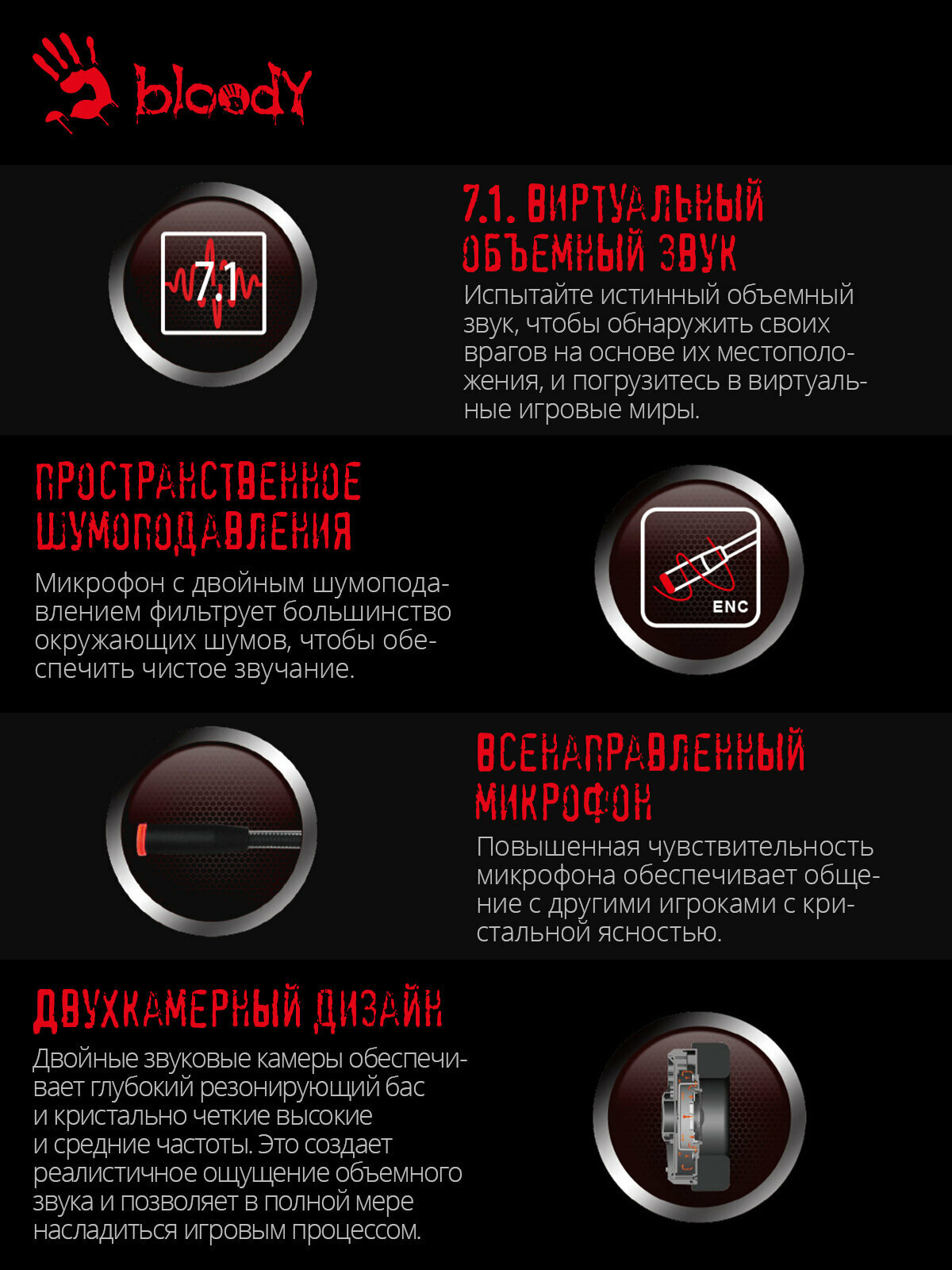 Гарнитура игровая A4Tech Bloody G528C черный (g528c) интересное: