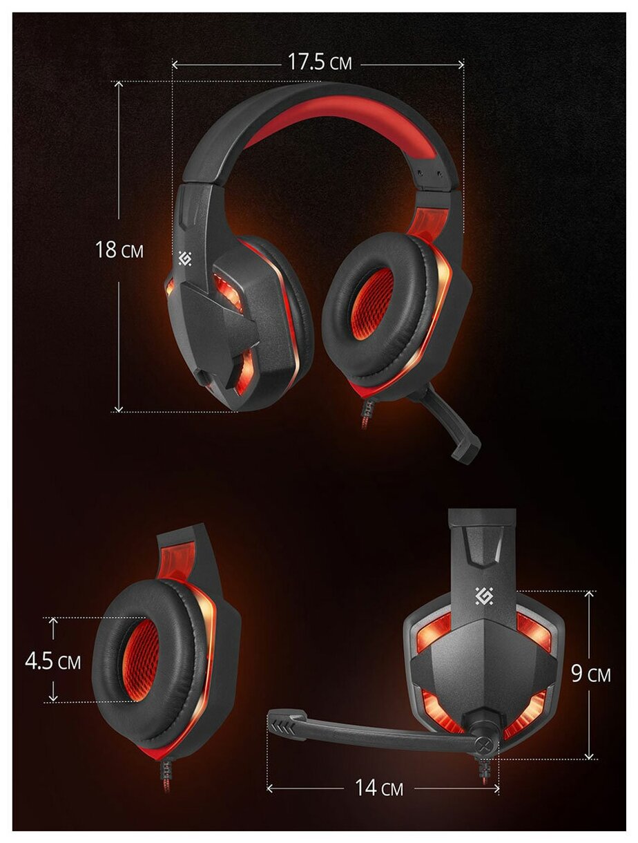 Гарнитура Defender Warhead G-370 black/red проводная, 20-20000 Гц, 32 Ом, 94 дБ, 20-16000 Гц, -45 дБ, USB/2x mini jack, 40 мм, черная/красная
