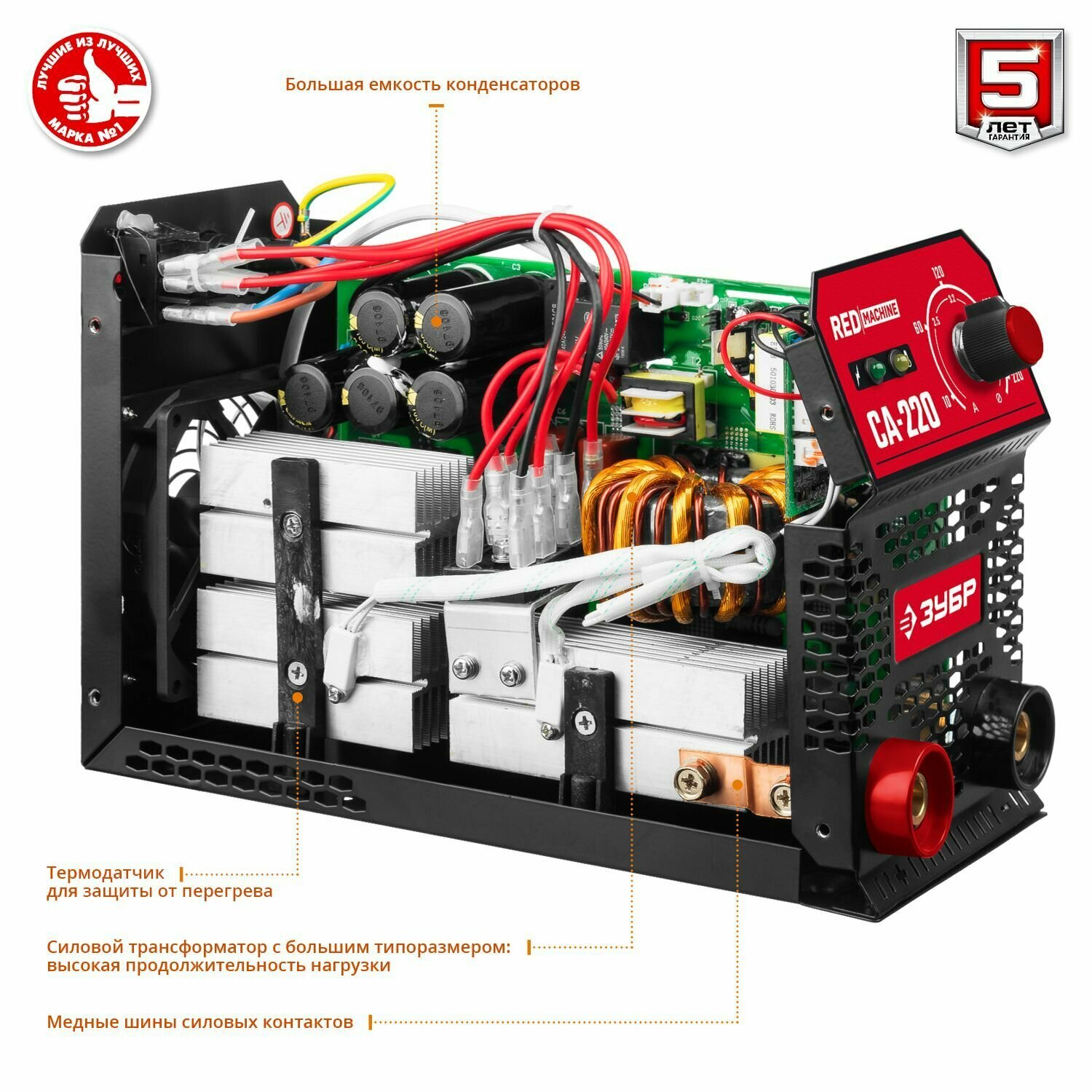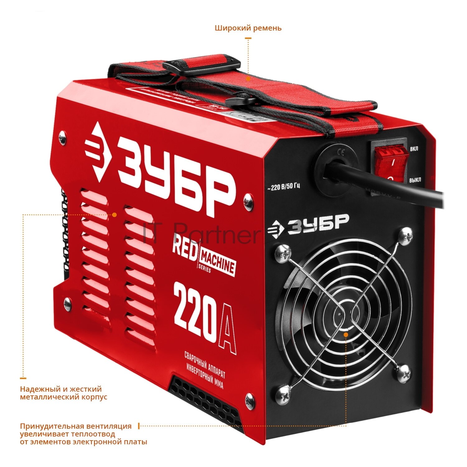ЗУБР ММА, 220 А, RED MACHINE, сварочный аппарат инверторный, макс. электрод Ø 5.0 мм (СА-220)