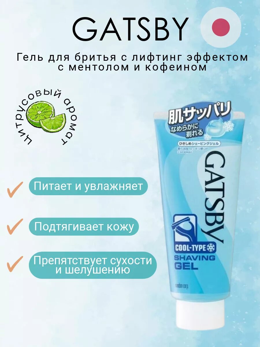 Гель для бритья с лифтинг эффектом с ментолом и кофеином Gatsby 205 г./ Гель для бритья мужской охлаждающий / Япония