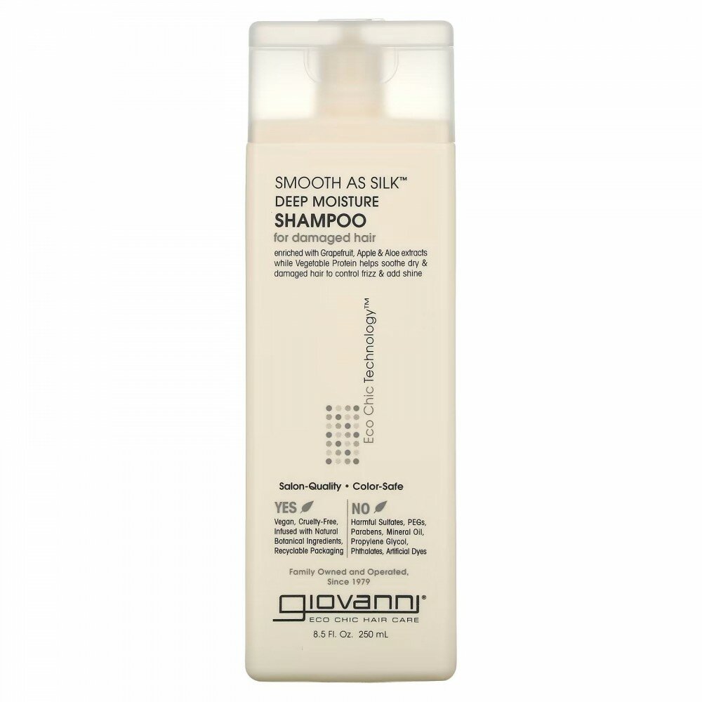 Giovanni, Smooth As Silk, шампунь для интенсивного увлажнения, для поврежденных волос, 250 мл (8,5 жидк. унции)