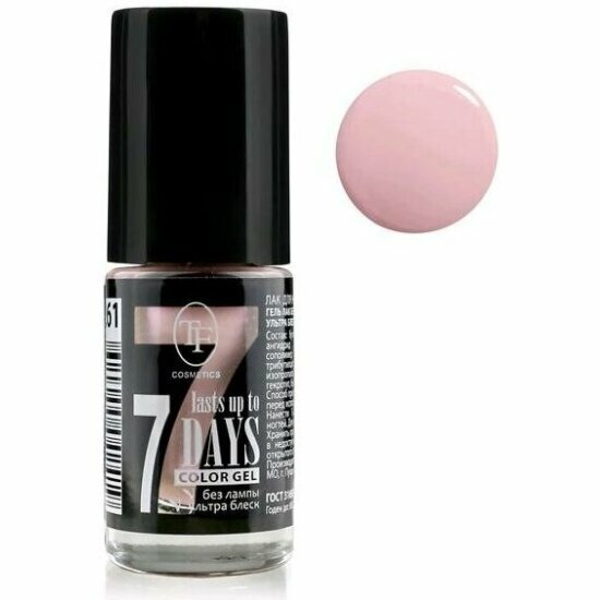 СохранитьTF Cosmetics лак для ногтей 7 days Color Gel, 8 мл, №261 розовый перламутр интересное: