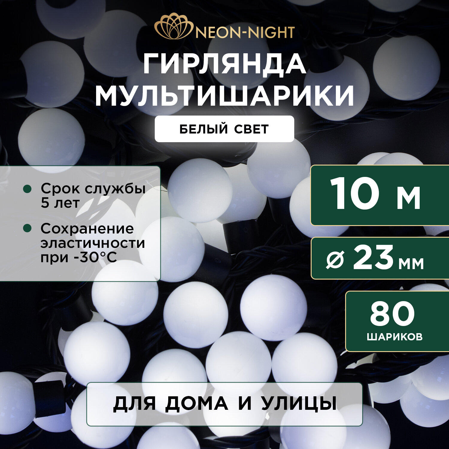 NEON-NIGHT Гирлянда "Мультишарики" Ø23 мм, 10 м, черный ПВХ, 80 диодов, цвет белый
