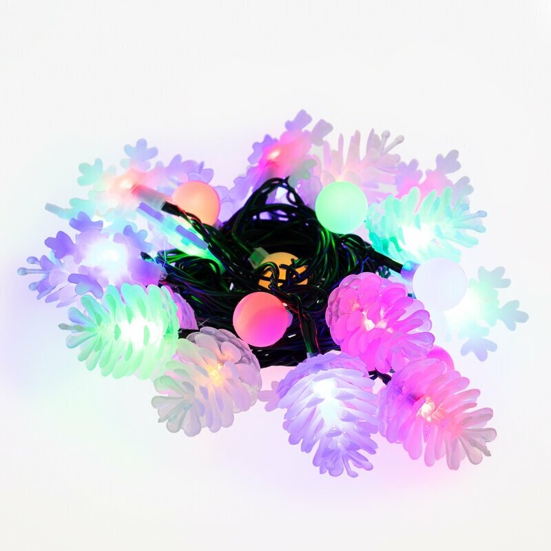 Светодиодная гирлянда ШарикиСнежинкиЕлочки 8 режимов 4.4м 30 Led, тёмно-зелёный провод, цвет свечени