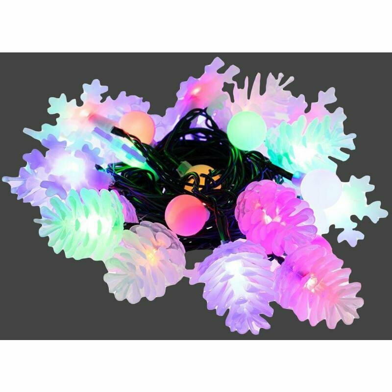 Светодиодная гирлянда NEON-NIGHT "Шарики-Снежинки-Елочки" 4.4 м, 8 режимов, 30 разноцветных светодиодов, тёмно-зелёный провод