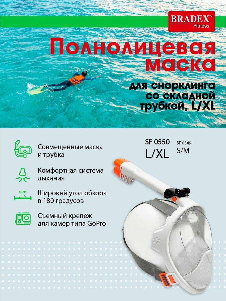 СохранитьBRADEX Полнолицевая маска для снорклинга со складной трубкой, L,XL, BRADEX интересное: