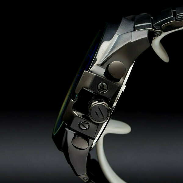 | Минусы: | Секундная стрелка маленького верхнего хронографа стоит не правильно, отклоняется на 5 градусов вправо.