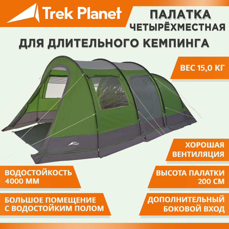 Палатка кемпинговая TREK PLANET Vario Nexo 4, четырехместная, зеленый