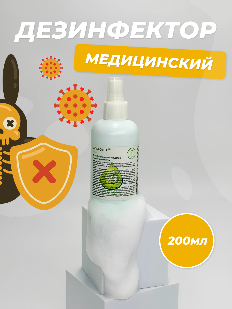 Антисептик для рук альтсепт альтсепт, 200 мл, с распылителем, кожный дезинфицирующий спиртосодержащий (70%), готовый раствор