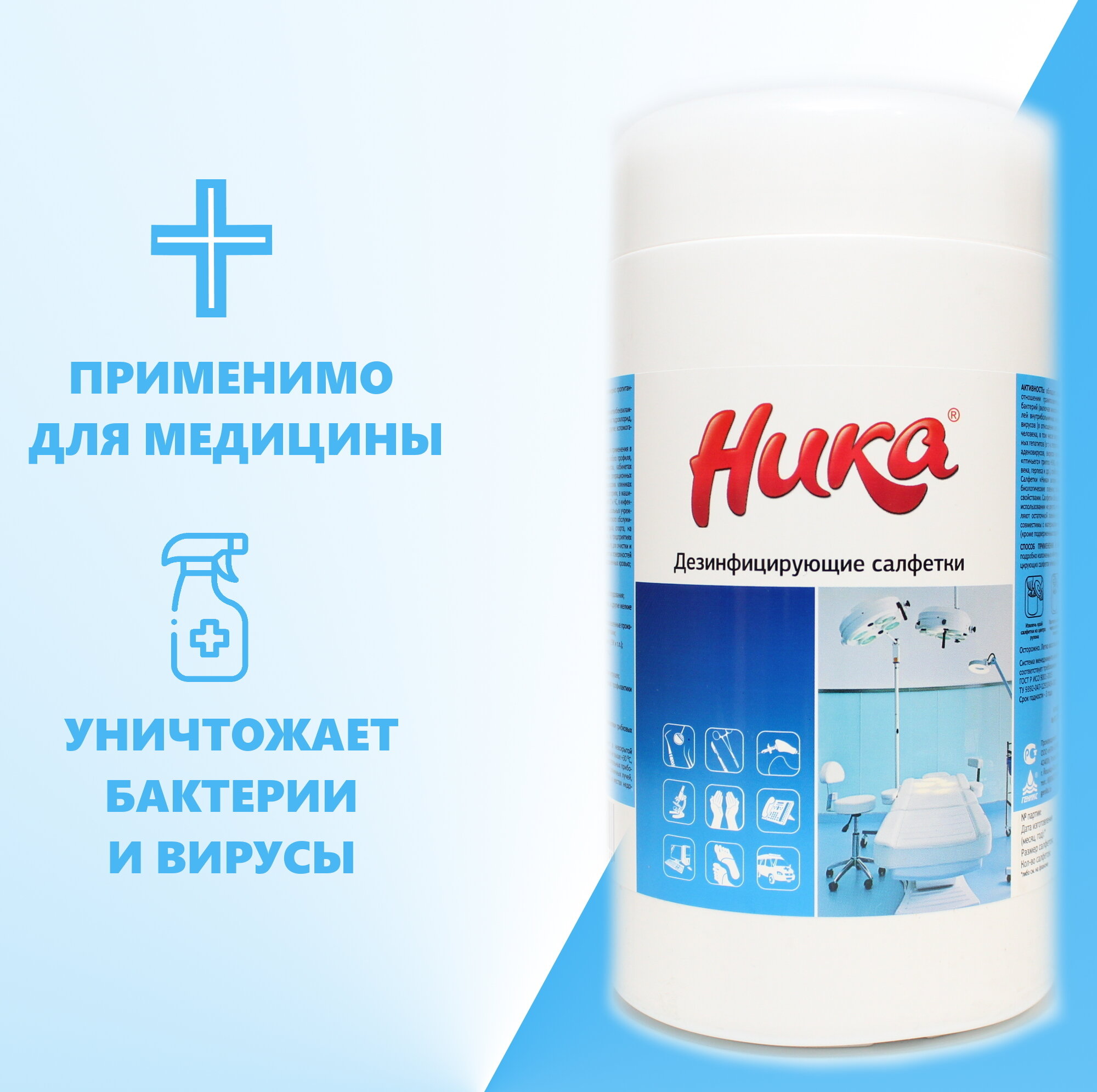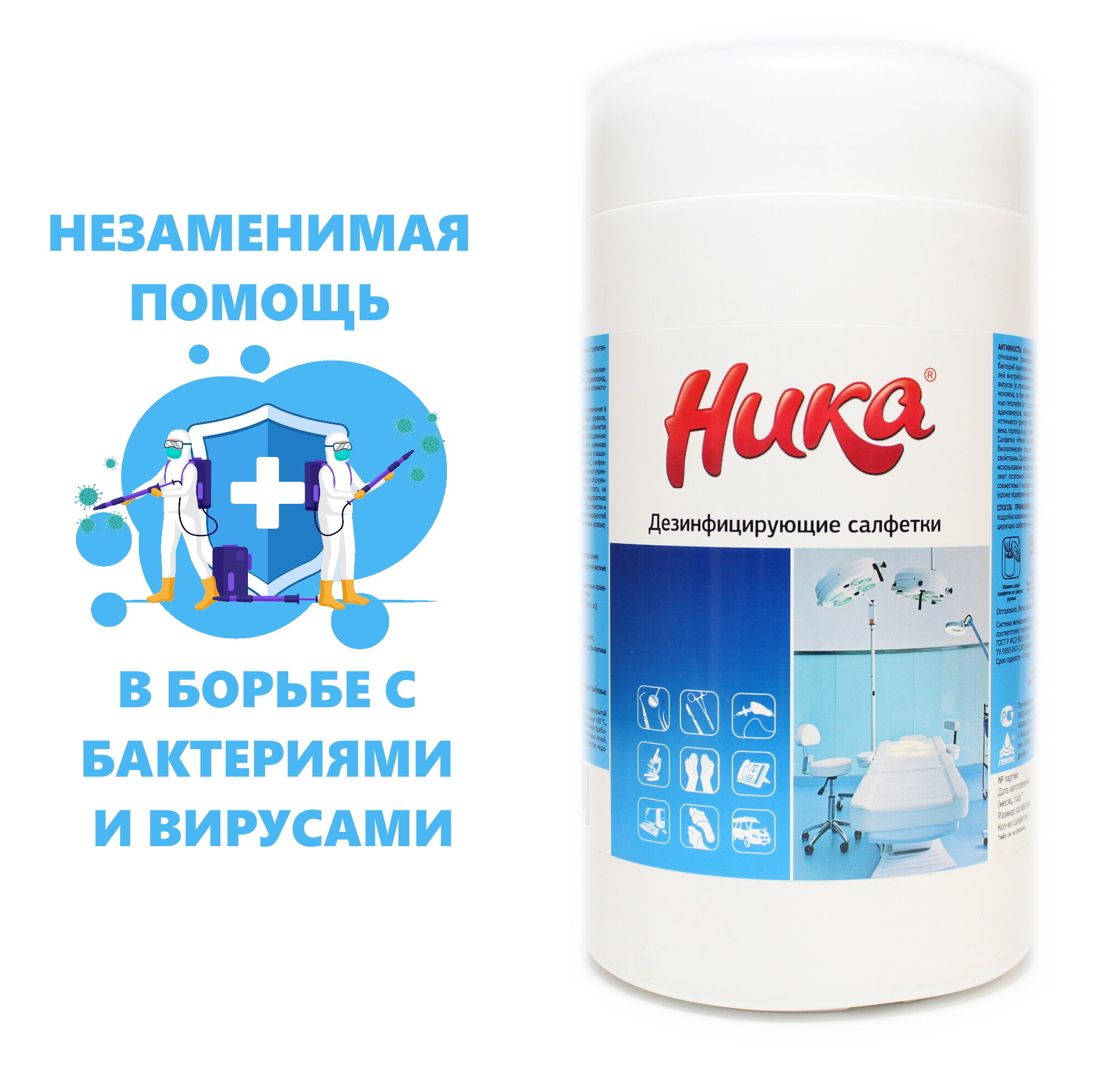 Дезинфицирующие салфетки Ника 80 штук в банке