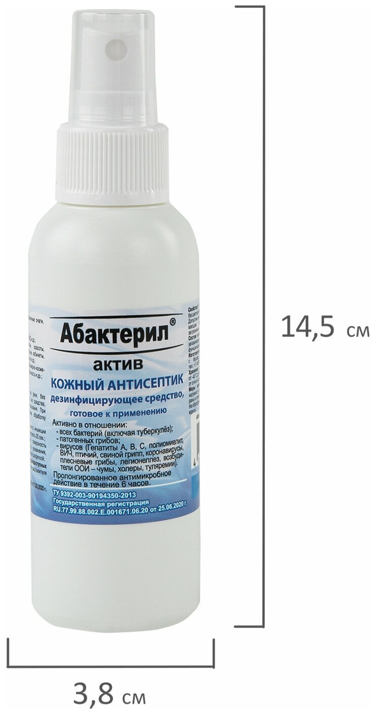 Антисептик для рук абактерил абактерил-актив, 100 мл, с распылителем, кожный дезинфицирующий спиртосодержащий (64%), готовый раствор, АА-216