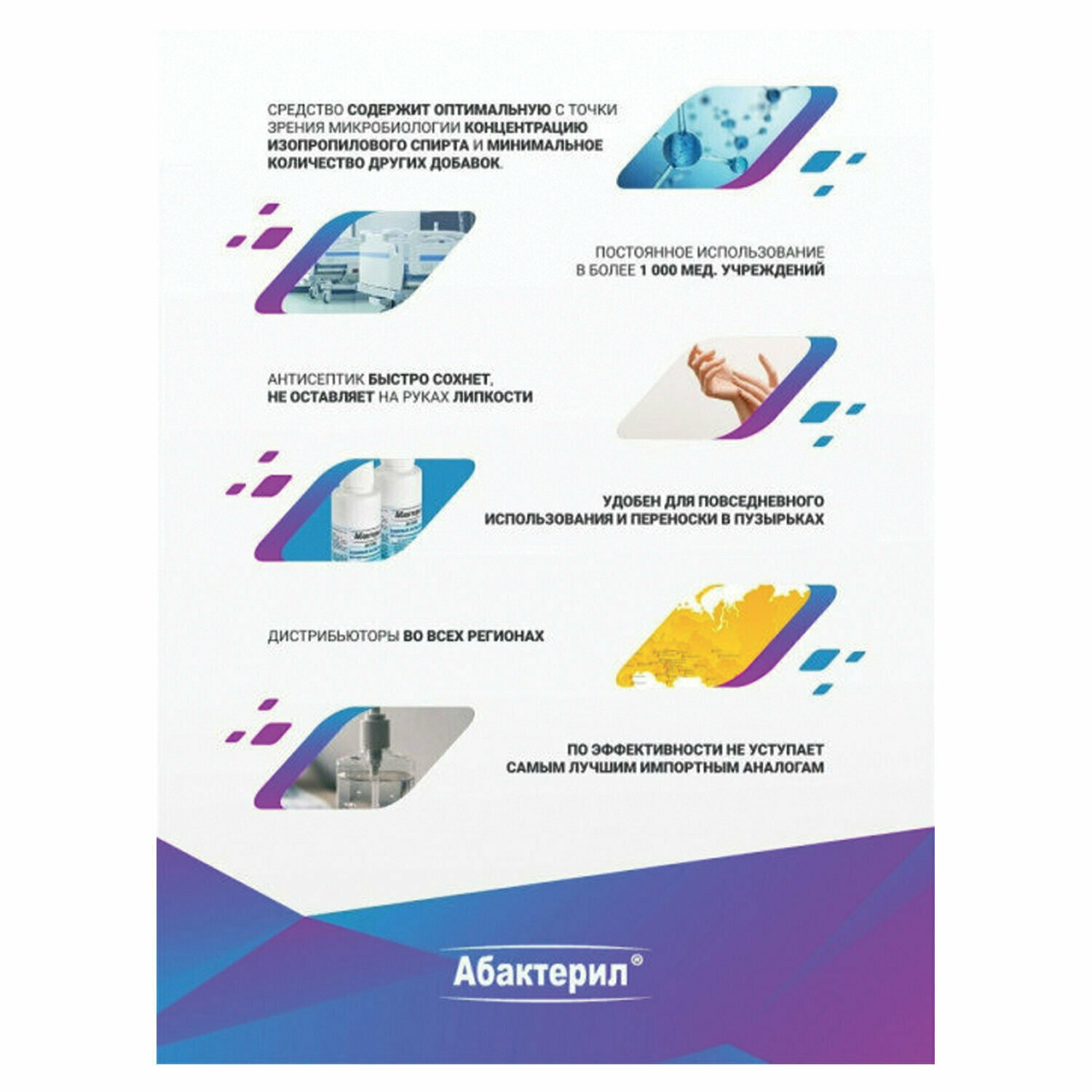 20 шт. Кожный антисептик с вирулицидной активностью ГОСТ 12.1.007-76 Абактерил-Актив с насос-дозатором 1 л.